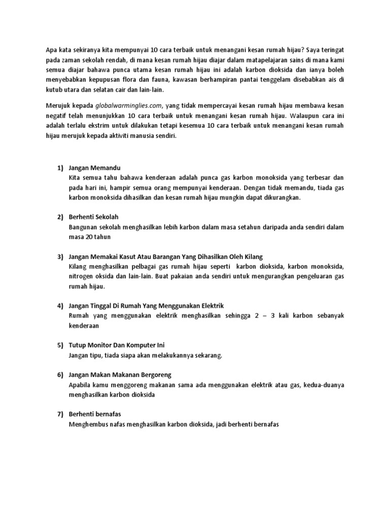 10 Cara Terbaik Untuk Menangani Kesan Rumah Hijau Pdf